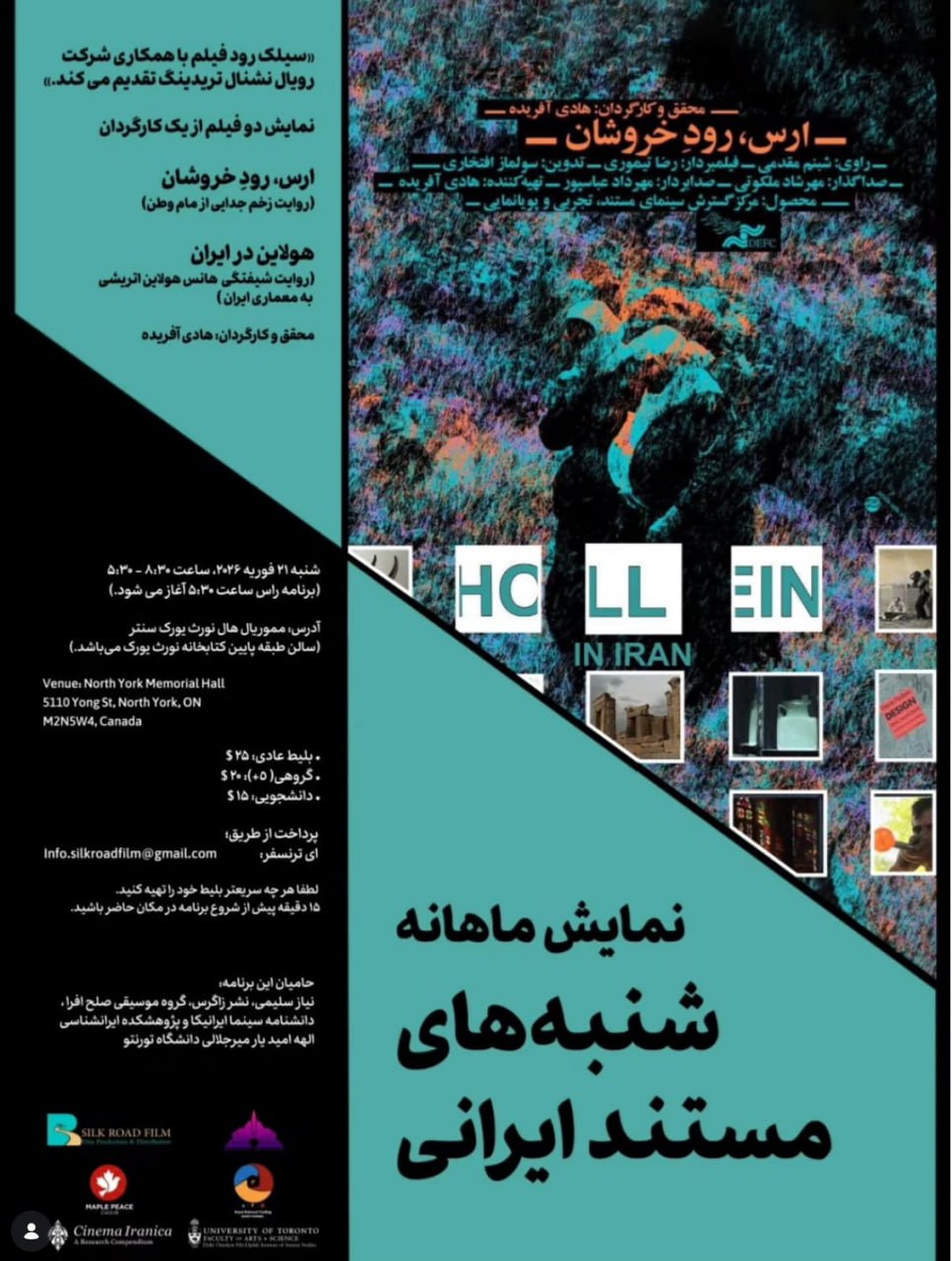 Documentary film is a visual record of the social, political and cultural events of a society for enlightenment. The 13th program of the monthly Iranian Documentary Saturdays is presented by Silk Road Film in collaboration with Royal National Trading Company. Saturday, February 21, 2026, 8:30 AM - 5:30 PM |