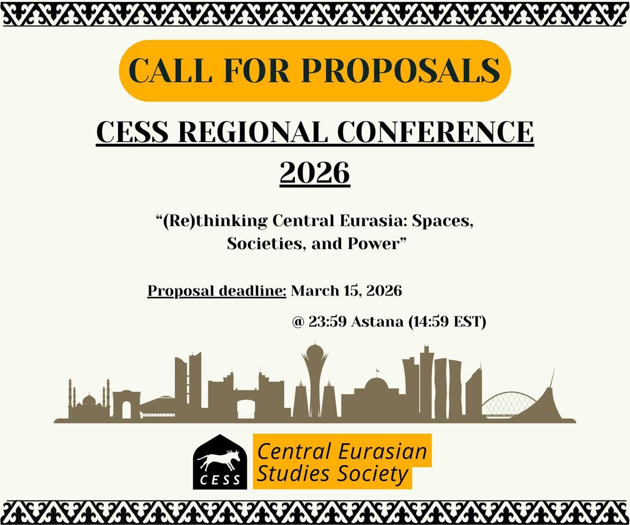 Central Eurasian Studies Society Regional Conference 2026 Date: June 16 – 19, 2026 |