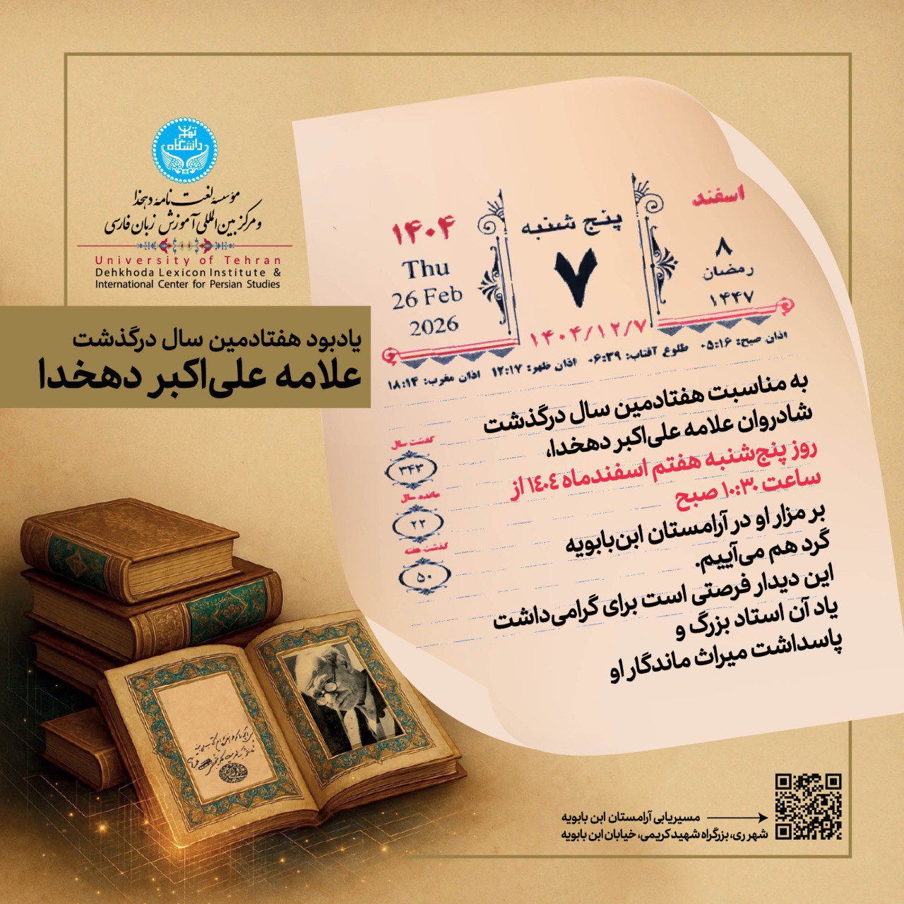 On the occasion of the 70th anniversary of the passing of the late Allama Ali Akbar Dehkhoda