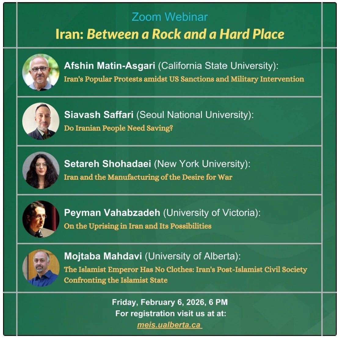 “Iran: Between a Rock and a Hard Place,” hosted by the Middle Eastern and Islamic Studies (MEIS) Research Group at the University of Alberta. |