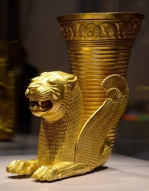 Golden Rhyton of Ecbatana - 5th century BC - Preserved at National Museum of Iran, discovered in the 1940s during excavations near Hegmataneh Hill (modern Ecbatana, Hamedan)