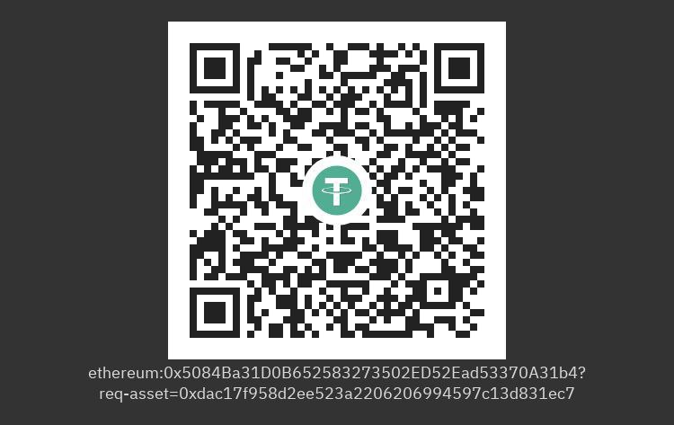 ethereum:0x5084Ba31D0B652583273502ED52Ead53370A31b4?req-asset=0xdac17f958d2ee523a2206206994597c13d831ec7